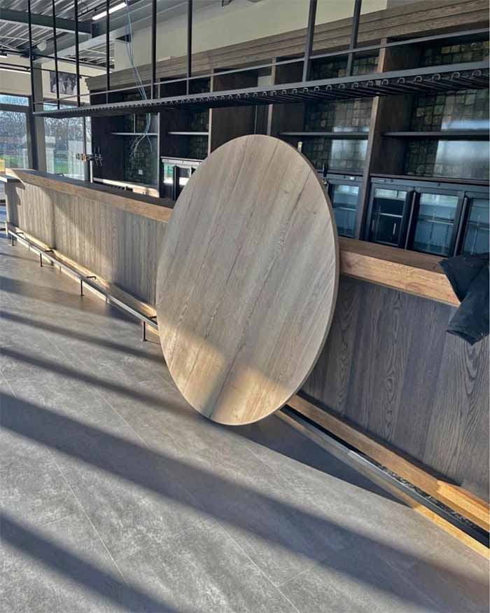 Mooie grote ronde tafel voor in de kantine boven
