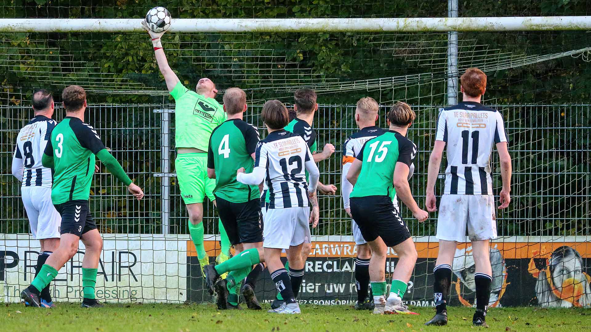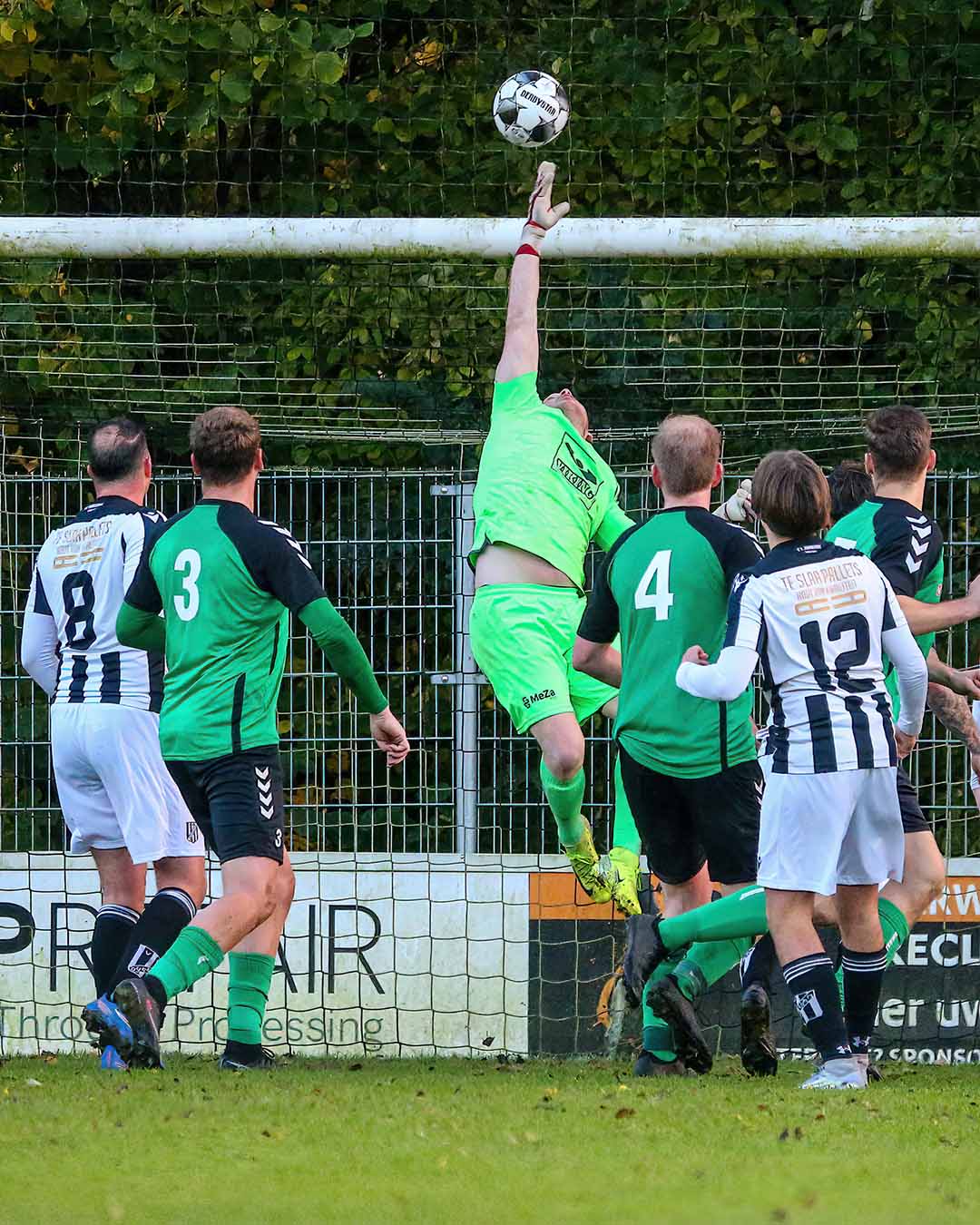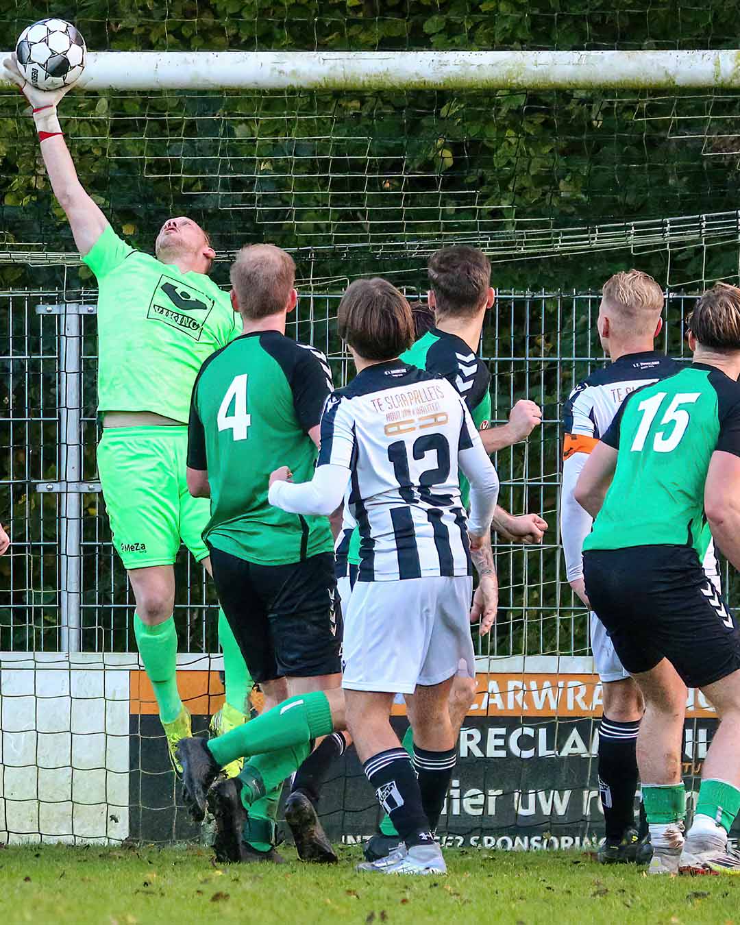 Dordrecht - Dit is zonder meer de foto van het weekeinde, vinden we bij Dordt2222. De fantastische redding van Dubbeldams keeper Davey van Pelt in de extra tijd van het topduel met Noordeloos. Dankzij dit geweldige optreden van de Dubbeldamse ‘superman’ trok Dubbeldam de 2-1 zege over de streep.