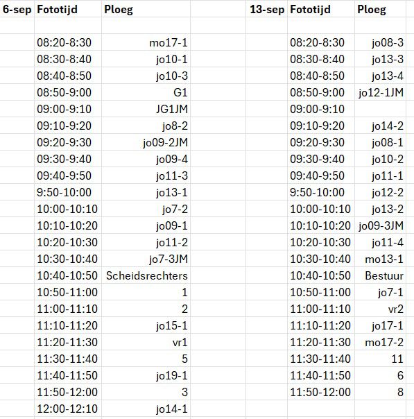Kijk goed in het schema wanneer jouw team aan de beurt is en *kom op tijd*. Teams die te laat zijn, kunnen helaas niet op de foto.