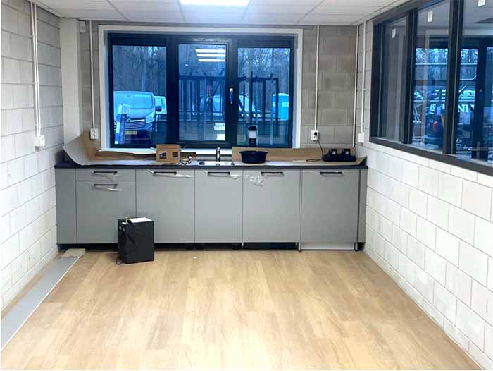 RV Bouw- en timmerbedrijf is met de laatste afwerkpuntjes bezig in het gebouw om het er spik en span te maken.