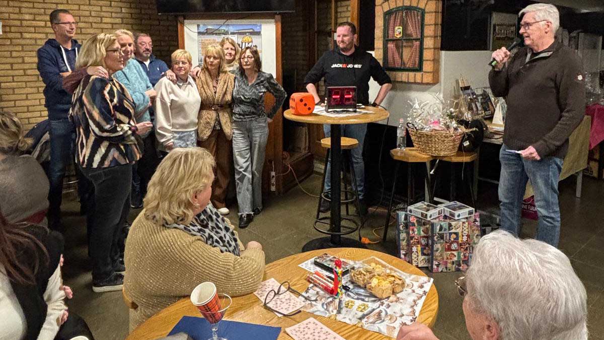 Voorzitter Arie in 't Veld bedankte de bingo commissie voor de organisatie